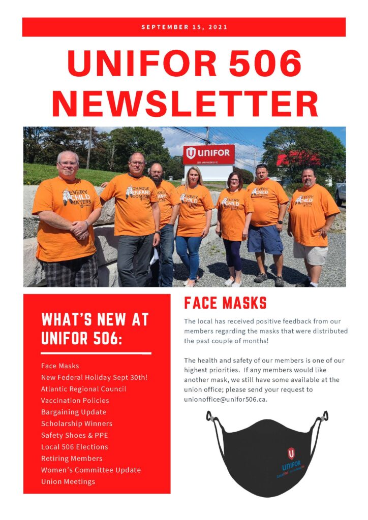 Click link for Newsletter in PDF format… https://unifor506.ca/wp-content/uploads/2021/09/Unifor-506-Bulletin-Updated-Sept-16-RED.pdf Face Masks The Local has received positive feedback from our members regarding the masks that were distributed the […]